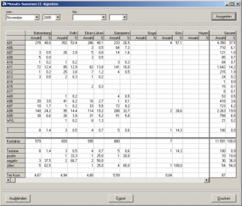 Außendienst → Auswertungen → Monats-Summen AD-MA