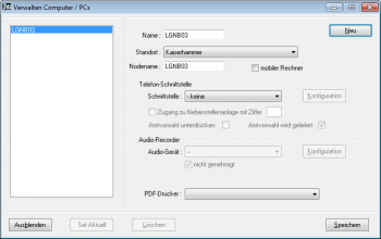 Die Neu-Anlage und Änderung von Computer-Profilen ist nur einem Benutzer mit dem Administrator-Recht möglich. Alle anderen Benutzer können jedoch eines der definierten Computer-Profile als aktuellen Computer festlegen.