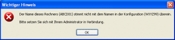 gestartet wurde, nicht mit dem im aktuellen Profil angegebenen Namen übereinstimmt, wird ein entsprechender Hinweis ausgegeben. Wenn Sie weiterarbeiten, ohne das Problem zu beheben, kann es sein, dass z.B. keine Verbindung zur Telefonanlage aufgebaut oder auch keine Ausdrucke erstellt werden können.