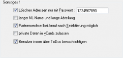 In der Adress-Verwaltung können einzelne Kontaktpersonen und Niederlassungen, aber auch komplette Firmen gelöscht werden. Um ein unbeabsichtigtes Löschen zu vermeiden, kann dieses mit einer zusätzlichen Passwort-Abfrage gesichert werden. Ein Benutzer kann eine Firma, eine Niederlassung oder eine Kontaktperson nur dann löschen, wenn ihm das hier definierte Passwort bekannt ist.