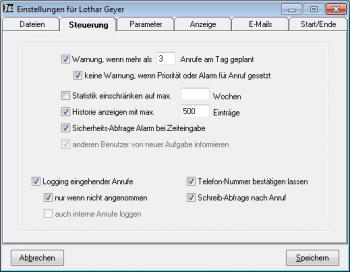 bei jedem neu geplanten Anruf, ob die hier definierte Maximalanzahl für den angegebenen Tag überschritten ist. Ist dies der Fall, wird ein entsprechender Hinweis ausgegeben. Sie können dann das Datum ändern oder aber auch den Hinweis ignorieren.
