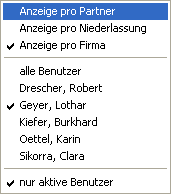 Können Daten eines anderen Benutzers angezeigt werden, sind im Popup-Menü eine Liste dieser Benutzer und - sofern sinnvoll - die Funktion “alle Benutzer„ enthalten.