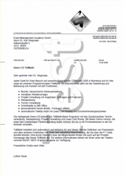 Briefe müssen im allgemeinen nachbearbeitet werden. D.h. sie kommen in ein Kuvert, eventuell sind Prospekte beizulegen usw. Dies kann einige Zeit in Anspruch nehmen. Deshalb können Sie hier das Datum eingeben, das im Briefkopf angedruckt wird. Falls Sie nichts eingeben, wird das aktuelle Datum verwendet.