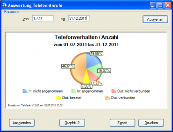 Diese Statistik ermittelt Summen und Anteile zu den von einem oder allen Benutzern geführten Telefonaten.
