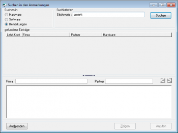 Hier wählen Sie aus, in welchem der Felder für Anmerkungen gesucht werden soll. Die Namen der Felder werden so ausgegeben, wie sie in der Maske Variable Texte definiert wurden.