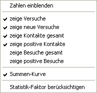 | Statistik-Faktor berücksichtigen | Bei der graphischen Darstellung der Versuche wird der in der Konfiguration gesetzte Parameter berücksichtigt. In diesem Fall wird eine zweite Y-Achse rechts dargestellt, die die Skala für die Linie der Kontaktversuche wiedergibt. |