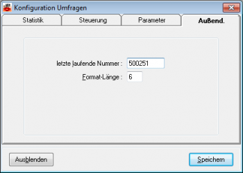 Zusätzlich kann die Länge eingestellt werden, in der die laufende Nummer in Dialogen, Statistiken und Protokollen dargestellt werden soll. Ist diese Länge z.B. auf 6 gesetzt, wird die laufende Nummer 10.234 als „010234“ ausgegeben.