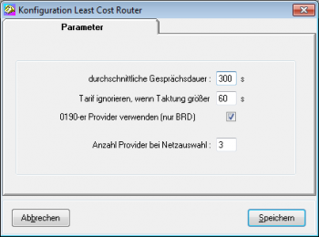Extras → Least Cost Router → Konfiguration