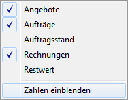 | Stand | Auftragsstand zum Monatsende. Summe der Werte aller Aufträge, die bis zum Ende des Monats erfasst waren und noch nicht auf „abgeschlossen“ gesetzt wurden. |