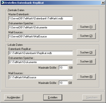 Mit dieser Schaltfläche wird das Erstellen eines Replikates sowie der Kopien des Dokumenten- und des E-Mail-Speichers gestartet. Die angegebenen Pfade werden in der Registry des Rechners gespeichert.